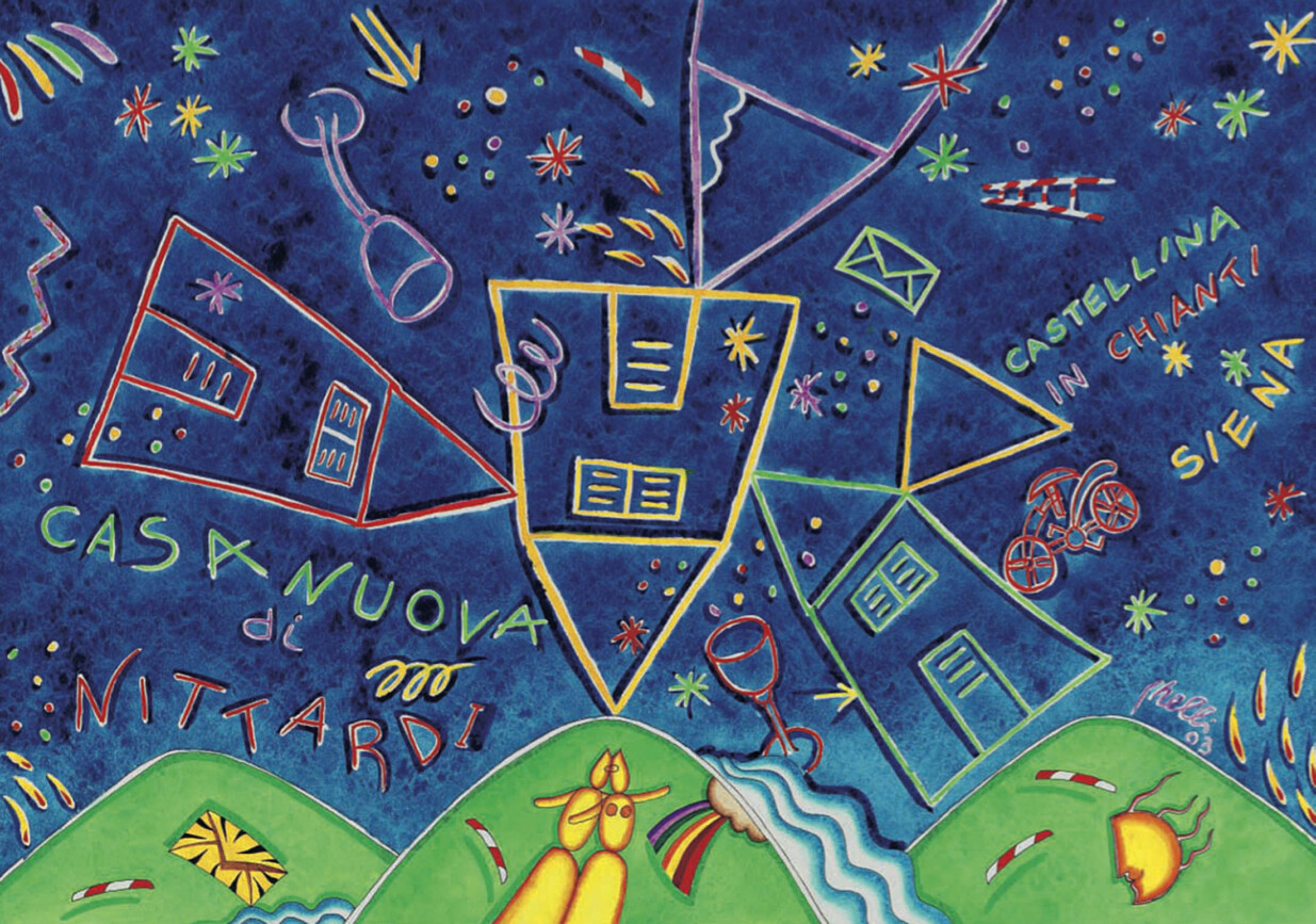 Als Hommage an seinen berühmtesten Besitzer, Michelangelo Buonarroti, pflegt und liebt Nittardi eine enge Verbindung zur Kunst: Seit 1981 schafft jedes Jahr ein internationaler Künstler zwei besondere Werke: eines für das Etikett und ein zweites für das Seidenpapier von Casanuova di Nittardi Vigna Doghessa, einem Chianti Classico, der bei Sammlern in der ganzen Welt beliebt ist. Berühmte zeitgenössische Künstler wie Valerio Adami, Hundertwasser, Corneille, Horst Janssen, Igor Mitoraj, Yoko Ono, Tomi Ungerer, Günter Grass, Dario Fo, Karl Otto Götz, Allan Jones, Mikis Theodorakis und Fabrizio Plessi haben die Etiketten und das Seidenpapier für unseren Casanuova di Nittardi entworfen.